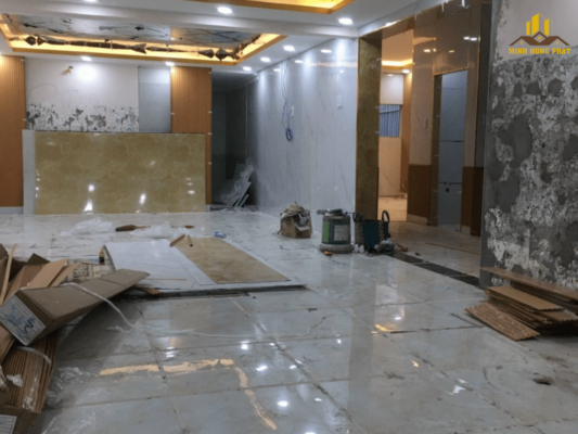 - Hoàn thiện và bàn giao: Sau khi hoàn tất công việc, chúng tôi sẽ tiến hành dọn dẹp sạch sẽ và bàn giao căn hộ cho bạn. Khách hàng sẽ cùng chúng tôi kiểm tra lại toàn bộ hạng mục đã thi công để đảm bảo chất lượng đạt yêu cầu.